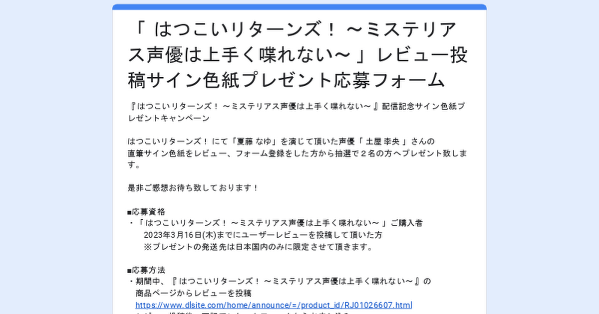 ・「はつこいリターンズ!~ミステリアス声優は上手く喋れない~」ご購入者