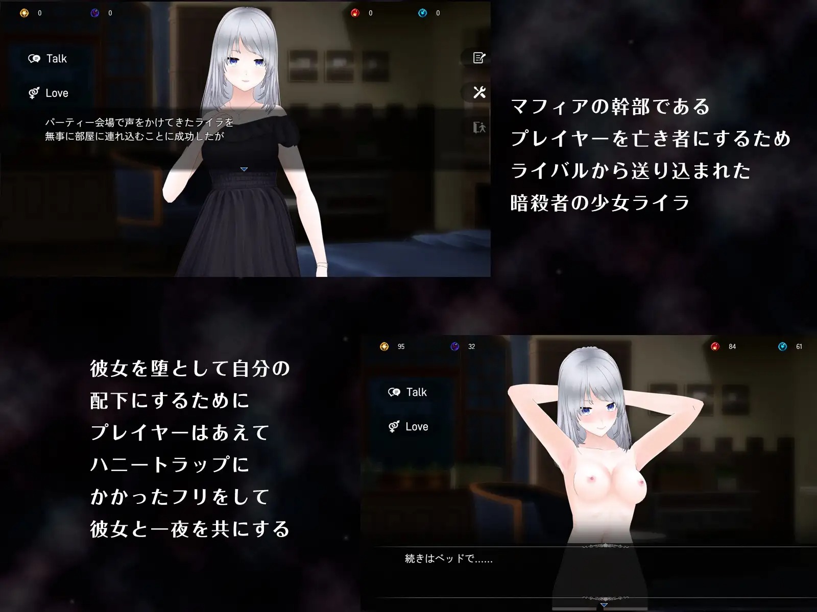 そんな彼を殺すべくライバルから差し向けられた暗殺者の少女ライラとブラッドは一夜を共にすることになる。