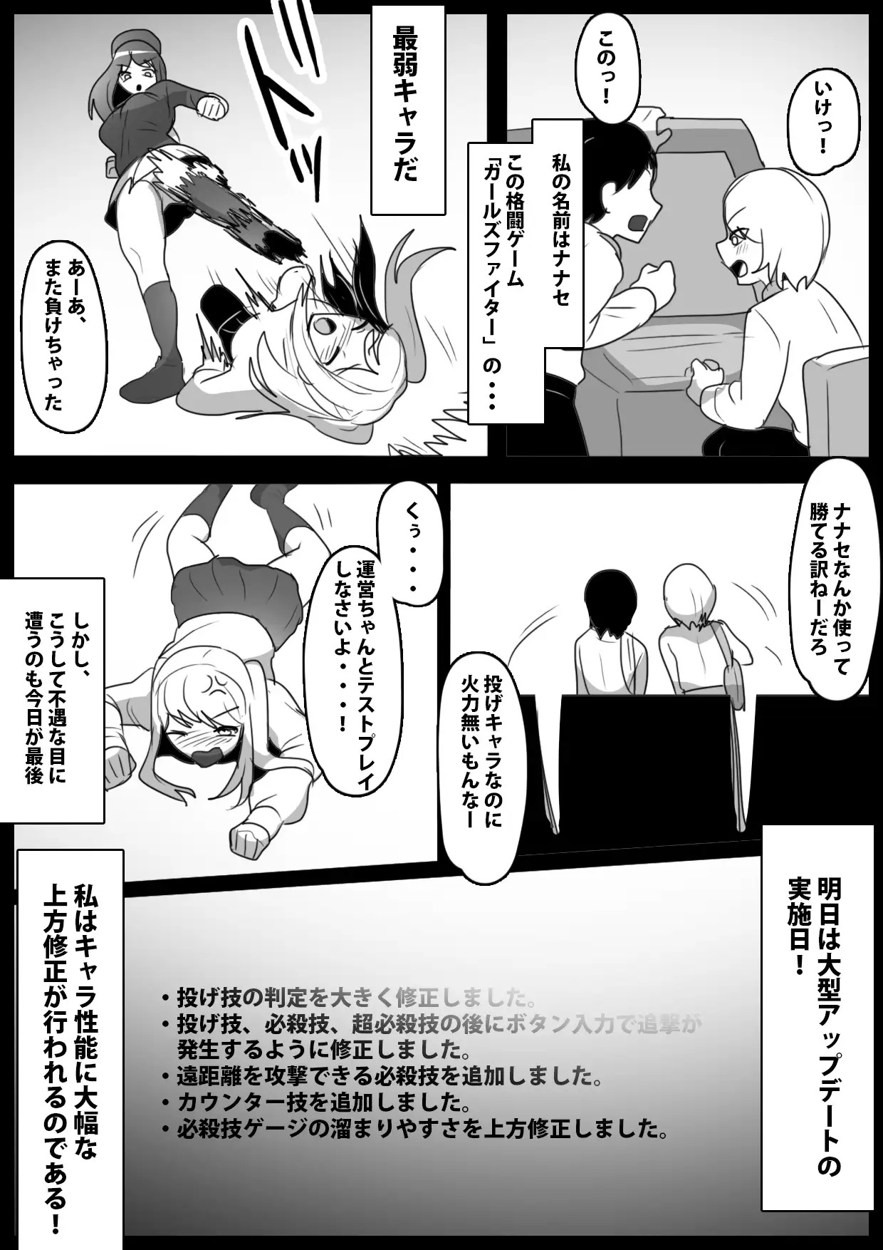 ナナセがどれだけ恥ずかしがろうと格ゲーのキャラ達はプレイヤーの操作には抗えず・・・格ゲーの女の子キャラがオナラ技を無理やり使わされて相手を倒しちゃうニッチなシチュエーションを描いた漫画です。