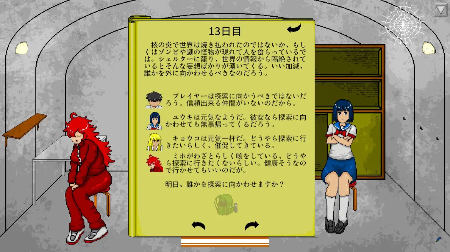 探索ではシェルターの住民から一人探索に向かう者を指定し、