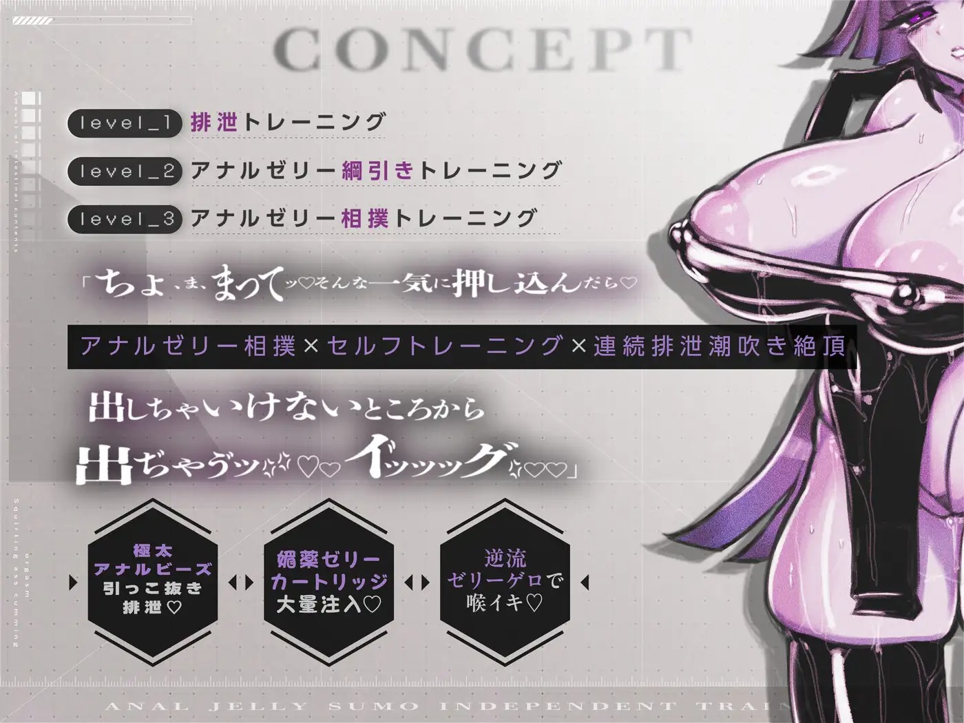 ・全編(全てのトレーニング)で「アナルゼリー注入 / 排泄 / 潮吹きアクメ / 連続絶頂 / ゼリーの飛び散り」を収録しています