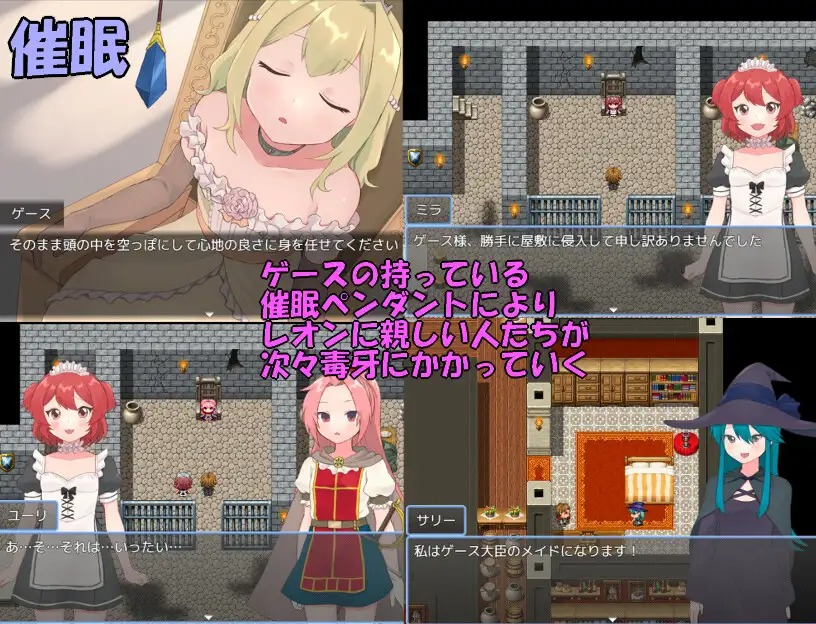 対ゲース:エリゼ、ミラ、ユーリ、サリーがゲースに催○暗示を受ける。ミラ、ユーリ、サリーはメイド化。回想シーン数34,基本CG27枚