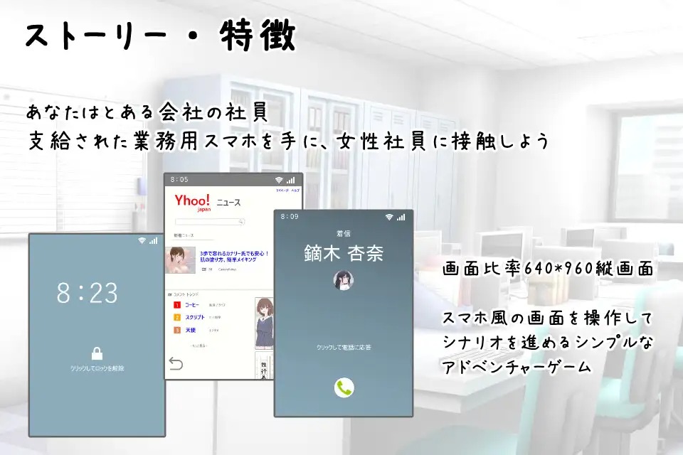 スマホ風画面を操作して会社の女性社員を全員孕ませるノベルゲーム