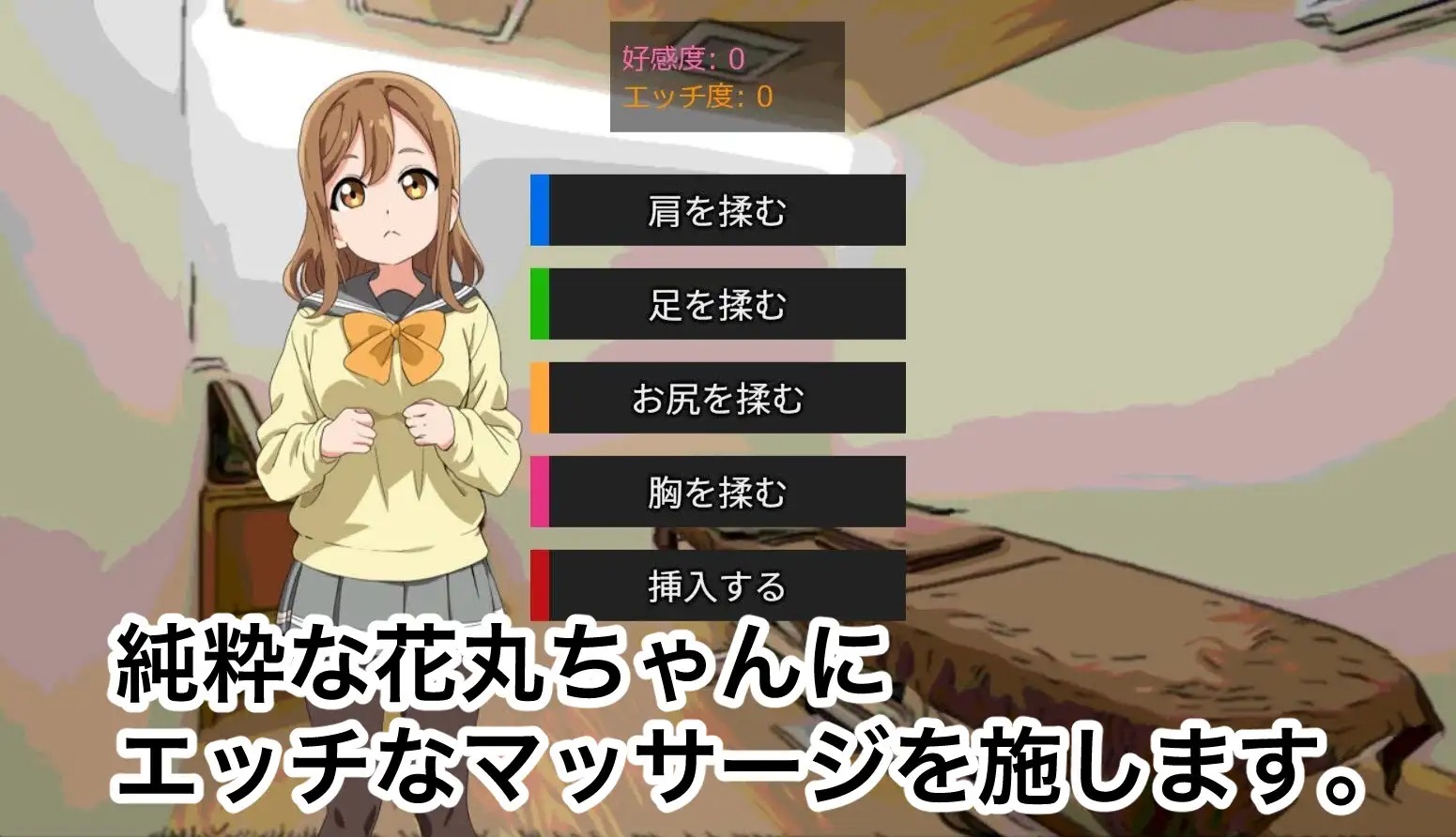 花丸ちゃんと性感マッサージR / JPYN シミュレーション X Bluesky Misskey Facebook はてブ LINE 2025.08.14 シミュレーション JPYN 花丸ちゃんと性感マッサージR ゲーム内容 ▼ストーリー▼ あなたはプロのマッサージ師として、緊張している花丸ちゃんの身体を優しくほぐしてあげるお仕事です。最初は恥ずかしがって緊張している彼女を、段階的にリラックスさせ、やがて甘美な快感の世界へと導いていきましょう。 ▼ヒロイン▼ 純粋で引っ込み思案な花丸ちゃん。普段は学校のアイドル部で活動している美少女。 システム説明 ▼ゲームシステム▼ マッサージの選択肢を選びます。選んだ選択肢によって、花丸ちゃんの好感度とエッチ度が変化します。好感度とエッチ度が高まると、よりエッチなマッサージが可能となります。いきなりエッチなマッサージをしようとすると拒否されて、好感度とエッチ度が下がってしまいます。 ▼CG内容▼ 基本CG: 16枚 プレイ時間: 30分〜40分 プレイ内容 肩揉み、足揉み、お尻揉み、胸揉み、乳首舐め、股間擦り合わせ、生挿入、中出しなど。