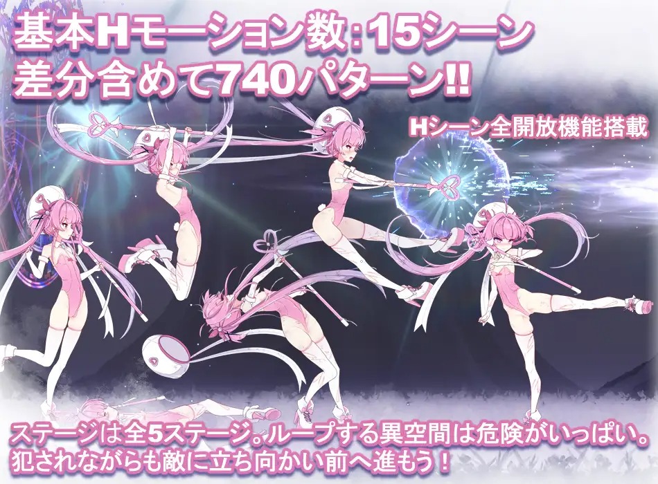 【概要】 ループする異空間を脱出するために戦う、魔法少女の2Dアクションゲームです。