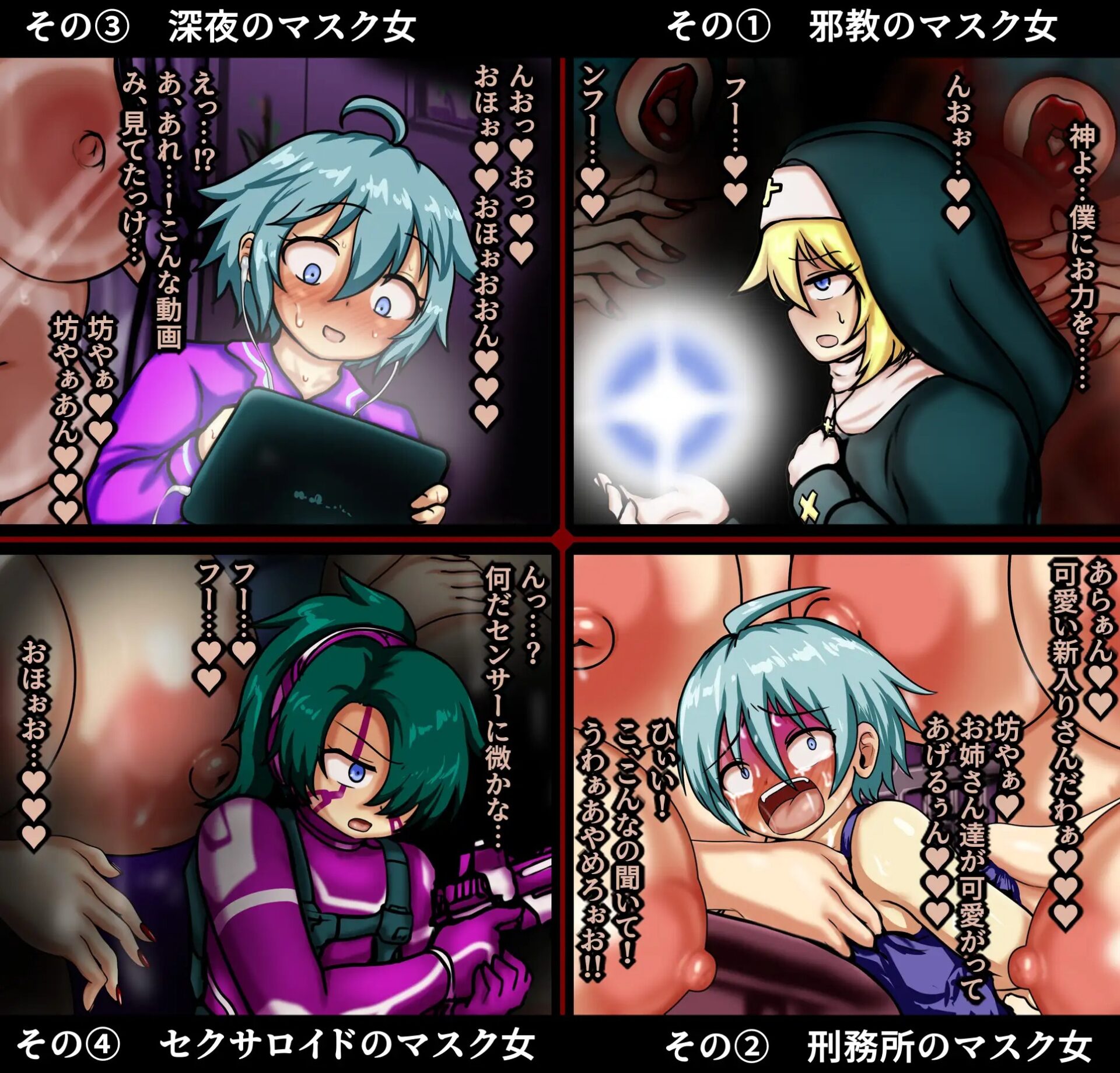 戦闘型アンドロイドの男の子がセクサロイドマスク女達に搾り取られます。基本CG12枚