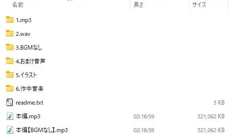 雨宿りとコーヒー4:51 先生はどうして作家になったんですか?【耳かき】50:34 あ な た の 世 界 。暗 闇 じ ゃ な い で す か … 【電車ASMR】26:31 夜の海辺と耳舐めと … 。【耳舐め】16:49 私がそんな欲求不満そうに見えたんですか?【耳舐め】13:25 彼女に先を越されるだなんて… 情けないですね先生は【キス&耳舐め】24:32 本編2時間17分 本編より眠れる 耳舐め&耳ふートラック ×21時間6分 ×2 作中音楽 1.Dialogue with Emptiness16:12 作中音楽 2.consolation18:18 トラック合計3時間58分オーディションで現れた謎の新人。その癒しの演技にご期待あれ -体験版あります-