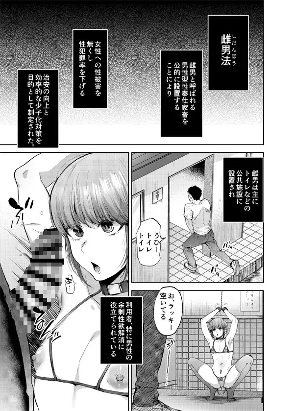 雌男法という、若年男性を改造し肉便器として使用する法律ができた世界の話です。