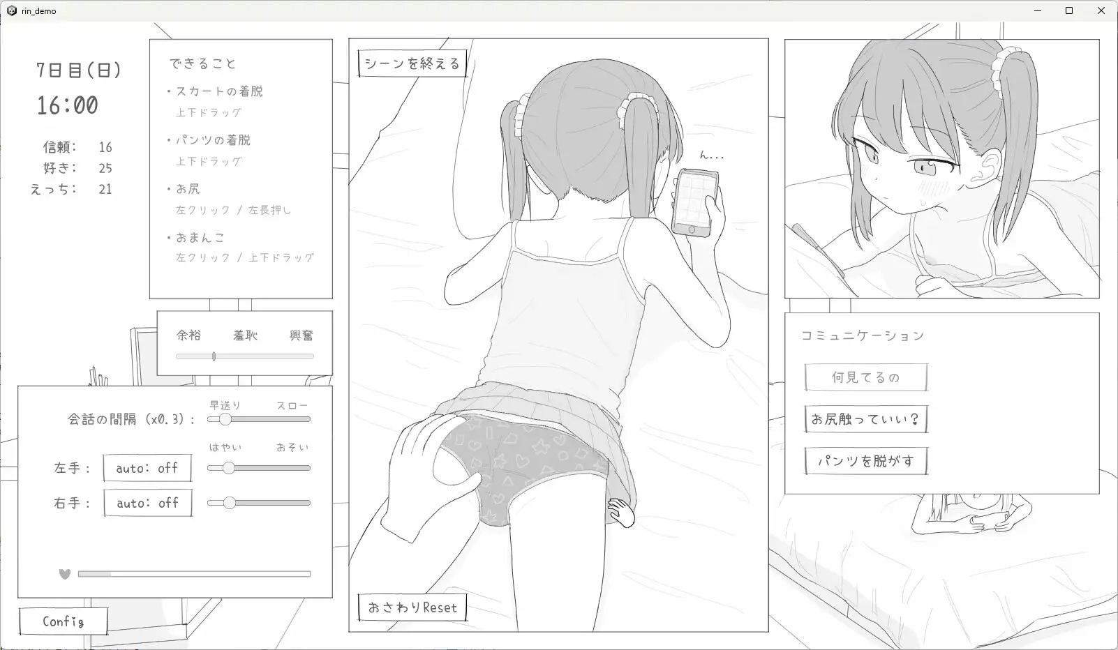 アパートの隣に住んでいる女の子と部屋でえっちなことをするおさわりシミュです。