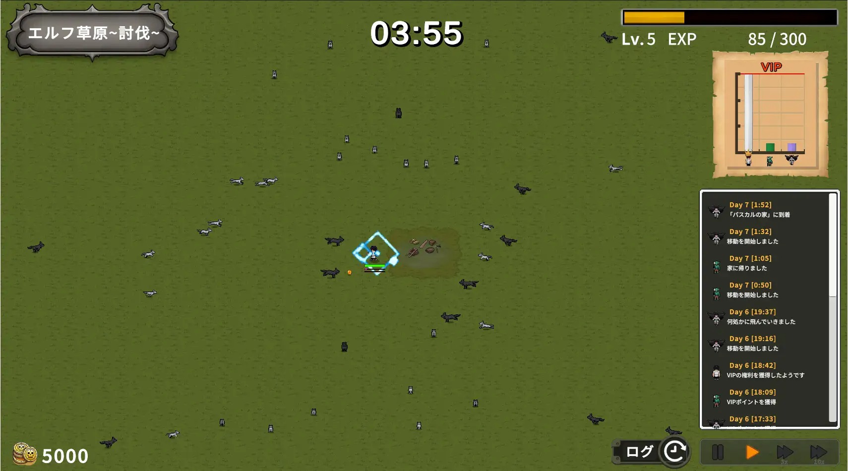 時間の進行は停止・再開・倍速が可能で、自分のペースで進められます。