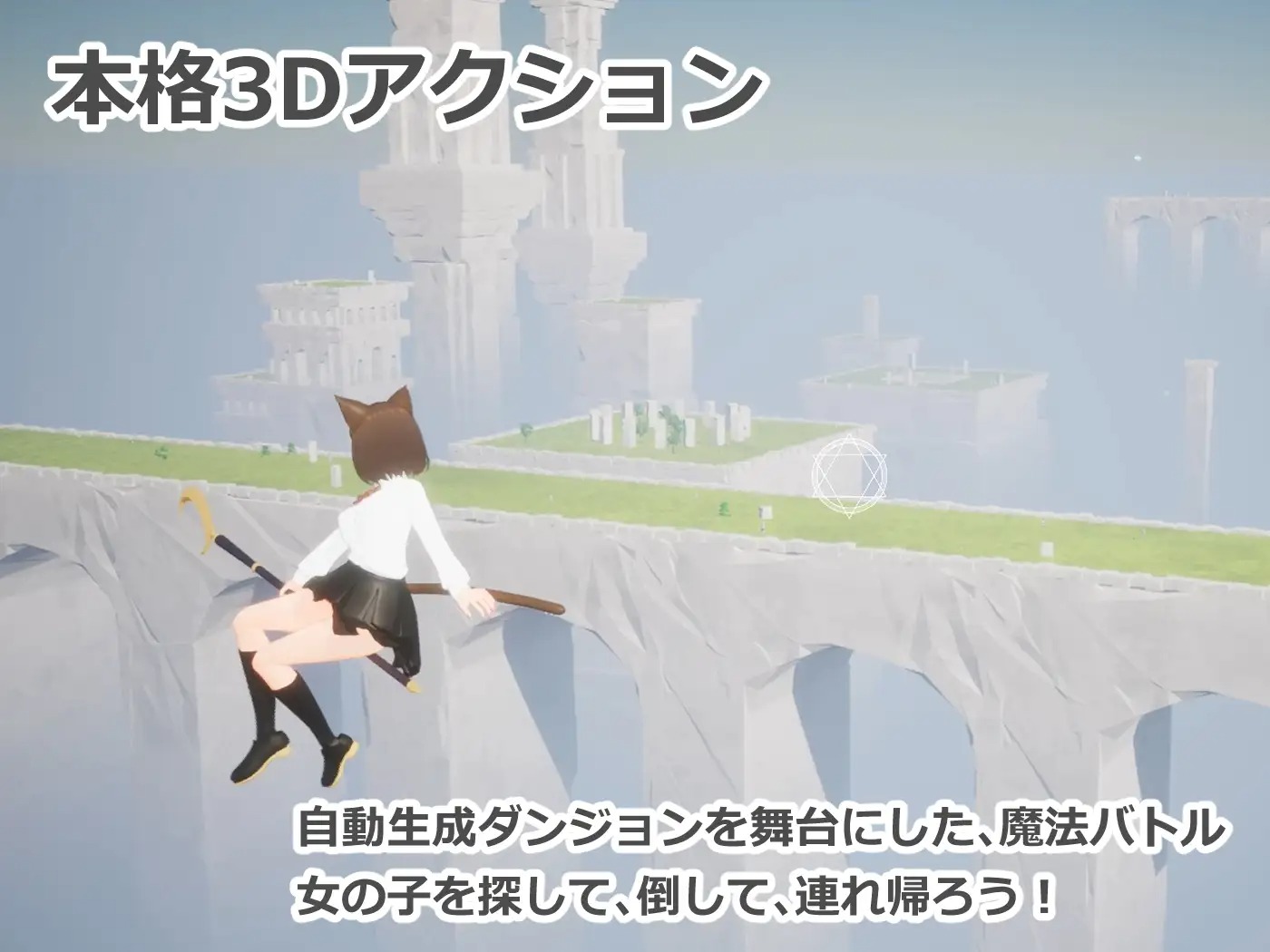 自動生成ダンジョンで、武器を拾ったり、アイテムを収集しながら、女の子を探します。