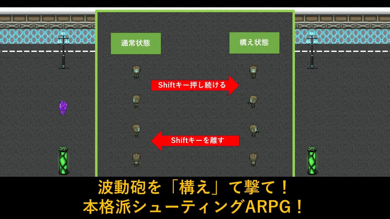ツクールとしては本格シューティングARPGを実現させました。戦闘システム