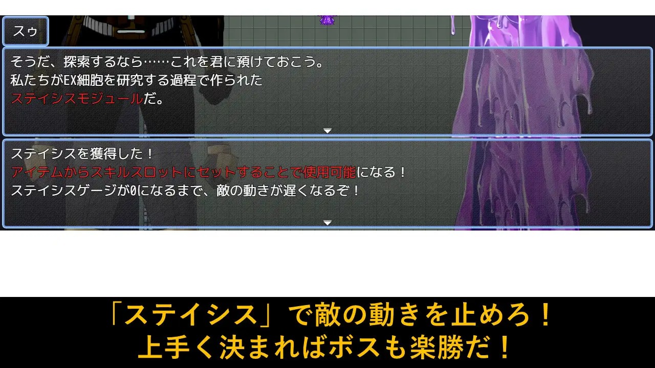 ・アイテム「ステイシス」を使うことで敵と敵の攻撃がゆっくりになる!