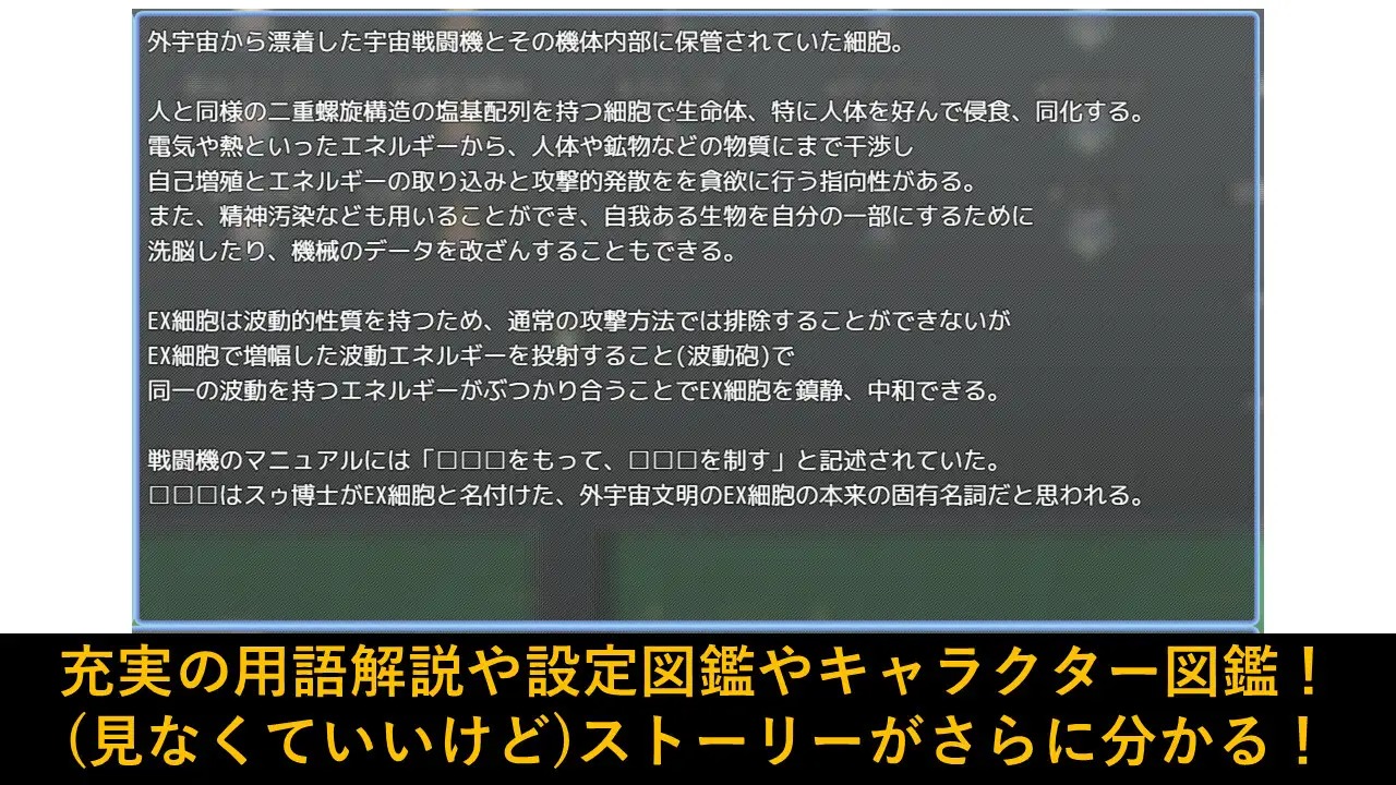 マザーはごく一部の特異な変化を遂げた選ばれた女性たちを「もんむす」と呼び使役していた。そして、主人公の手にはEX細胞を鎮静、無力化できる波動砲を発射できる