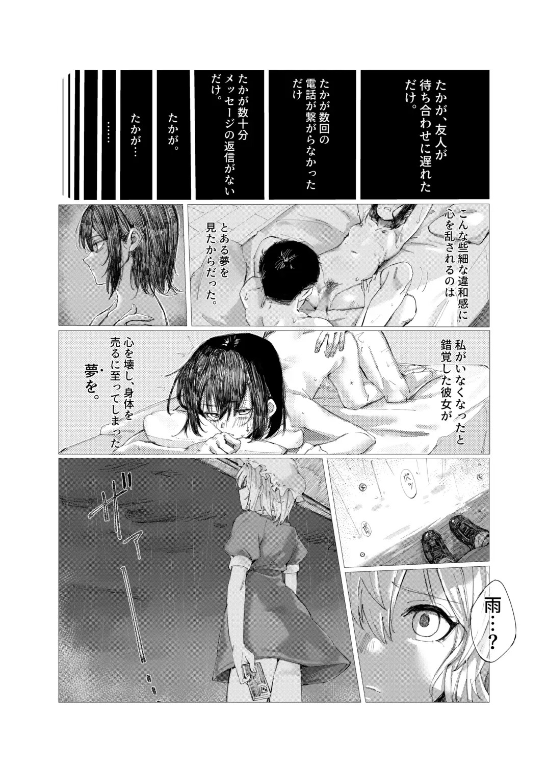 秘封倶楽部の相方、蓮子と待ち合わせをしていたが、待ち合わせ場所に蓮子は現れず、外は雨が降ってきてしまう。雨宿りをしていると謎の男が家に来ないか、と声をかけてきた。男が纏う怪しい雰囲気から、断ろうとするが謎の力で断ることが出来なかった。家に招かれてからも、男のペースにのせられてメリーは…