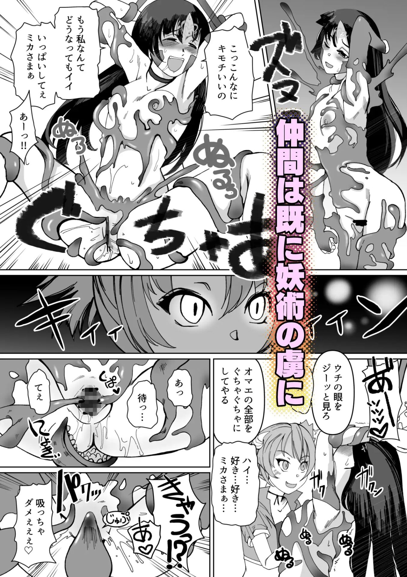 主人公のふたなり少女と同僚の少女二人が、悪の少女に強○絶頂で悪堕ちさせられる3Pものです。