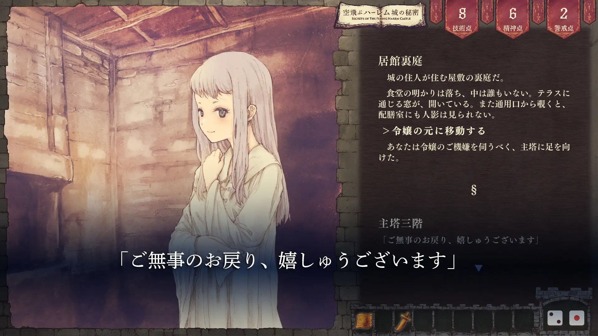 あなたはベテラン冒険者として空飛ぶ城に乗り込み、自慢の知恵と勇気、そして6つのスキルを駆使して、淫乱な城の女達やおぞましい魔物の脅威を打ち払い、城の秘密を解き明かして麗しの姫君を救出しましょう。あらすじ
