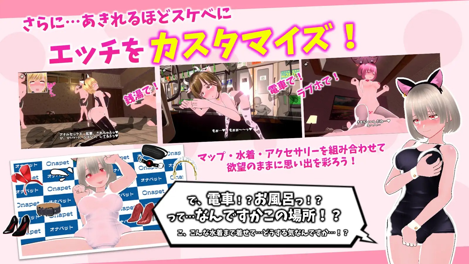 ・ラブホ、ソー〇ランド、電車など、背景チェンジも思うがまま!もちろん、フリーカメラや全開放機能など、