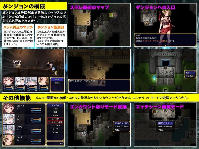 ダンジョン淫虫、宝箱に化けたミミックなどの様々な低レベルモンスター