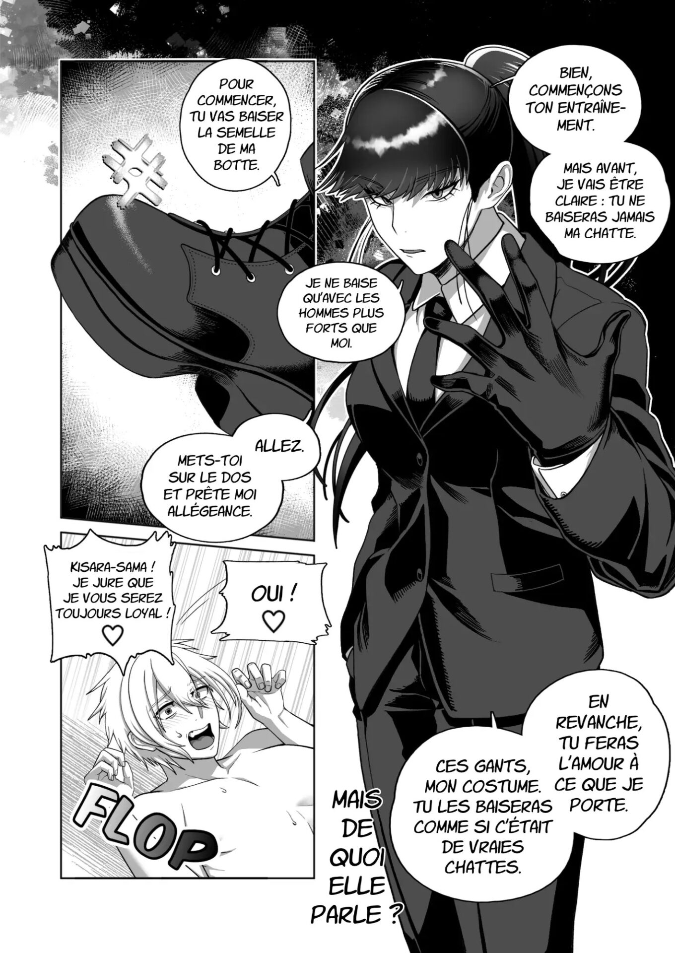 Contains: submissive male, domination/training, clothing fetish, clothed frottage (rubbing against her clothes), shoe fetish, shoeplay / shoe job, height-difference femdom (tall dominant woman), spit play, leather-glove fetish (glovejob), and other femdom elements.