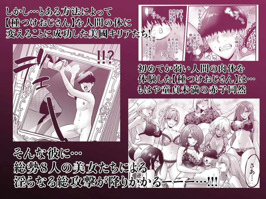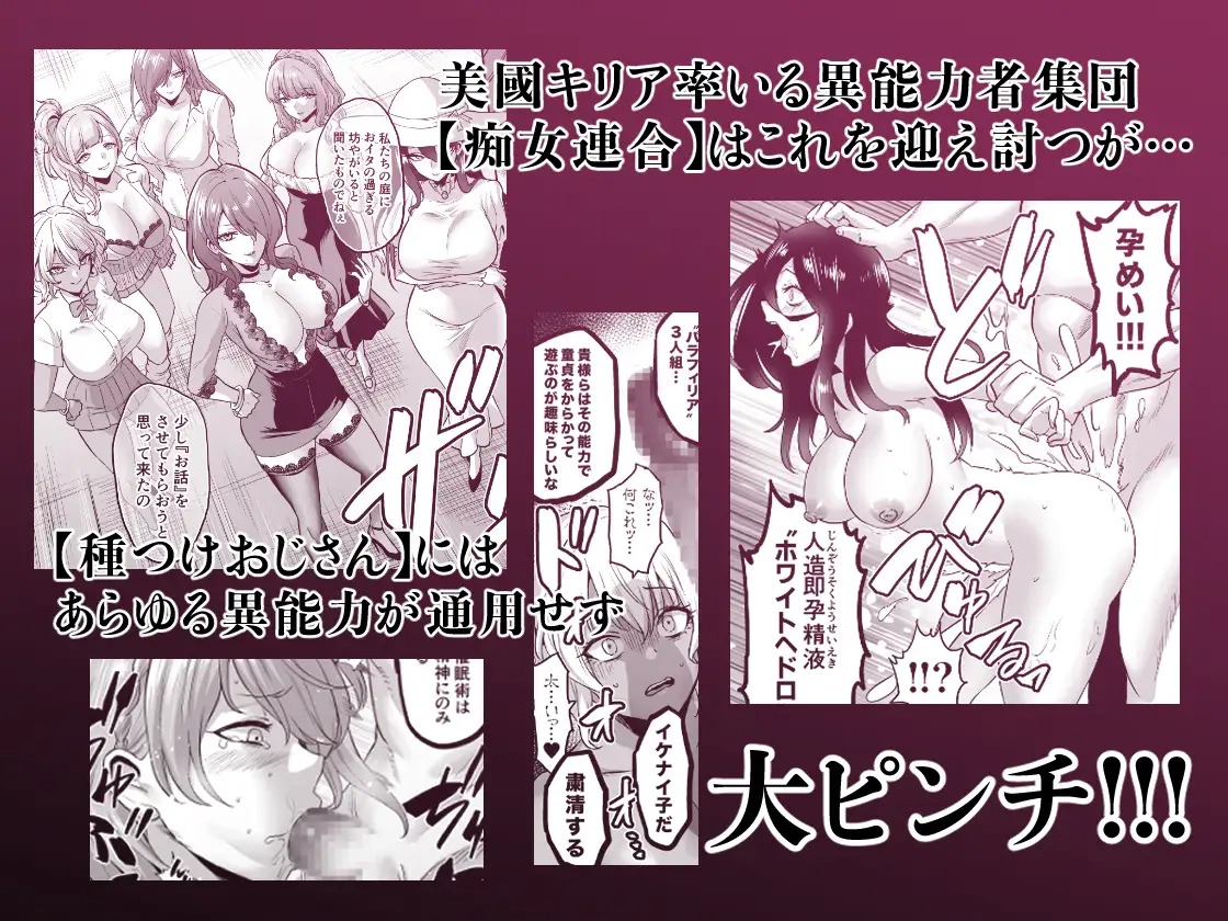 全人類ドM化計画「プロジェクト・フェムドム」が進行し、世界は今まさに魔女の手へと落ちようとしていた。しかし、そんな美國キリアの野望を打ち砕くべく、史上最強のオス【種つけおじさん】が立ち上がる。