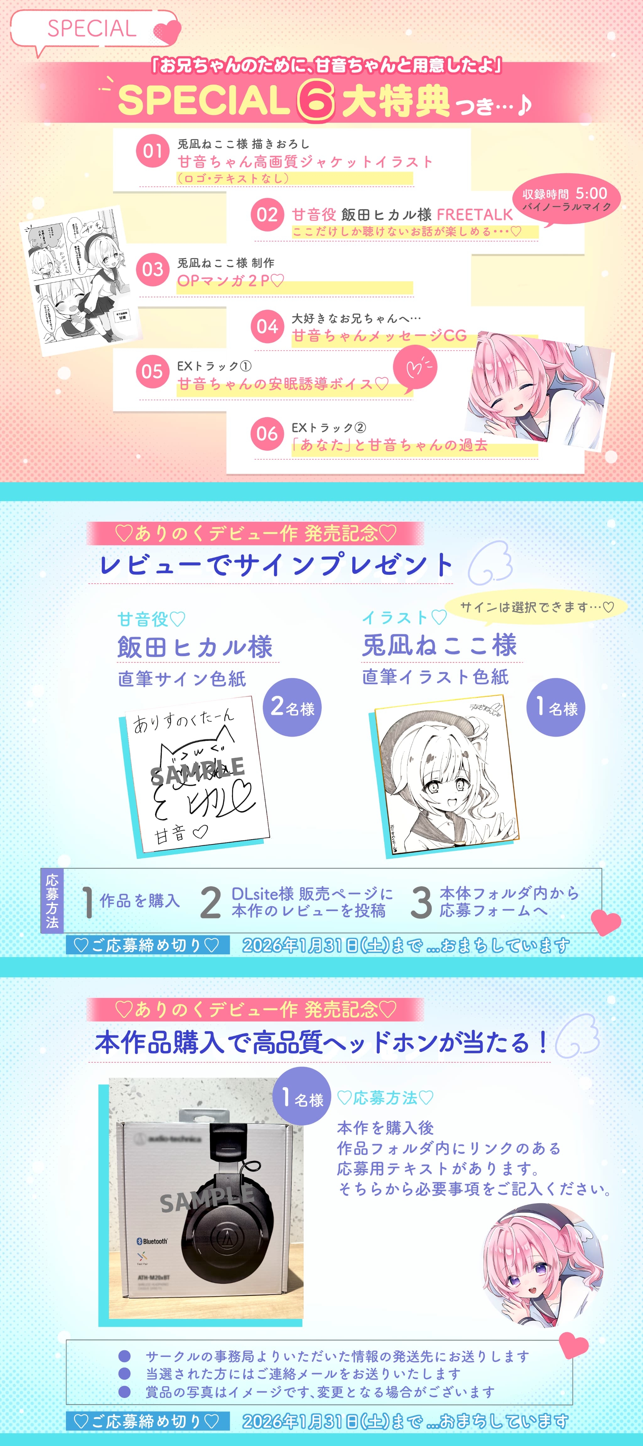 うん、甘音はそばにちゃんといるよ」✅*☽ 特典 *☽ 飯田ヒカル様フリートークや高画質ジャケットイラストマンガにエクストラトラックなど6特典つき♡