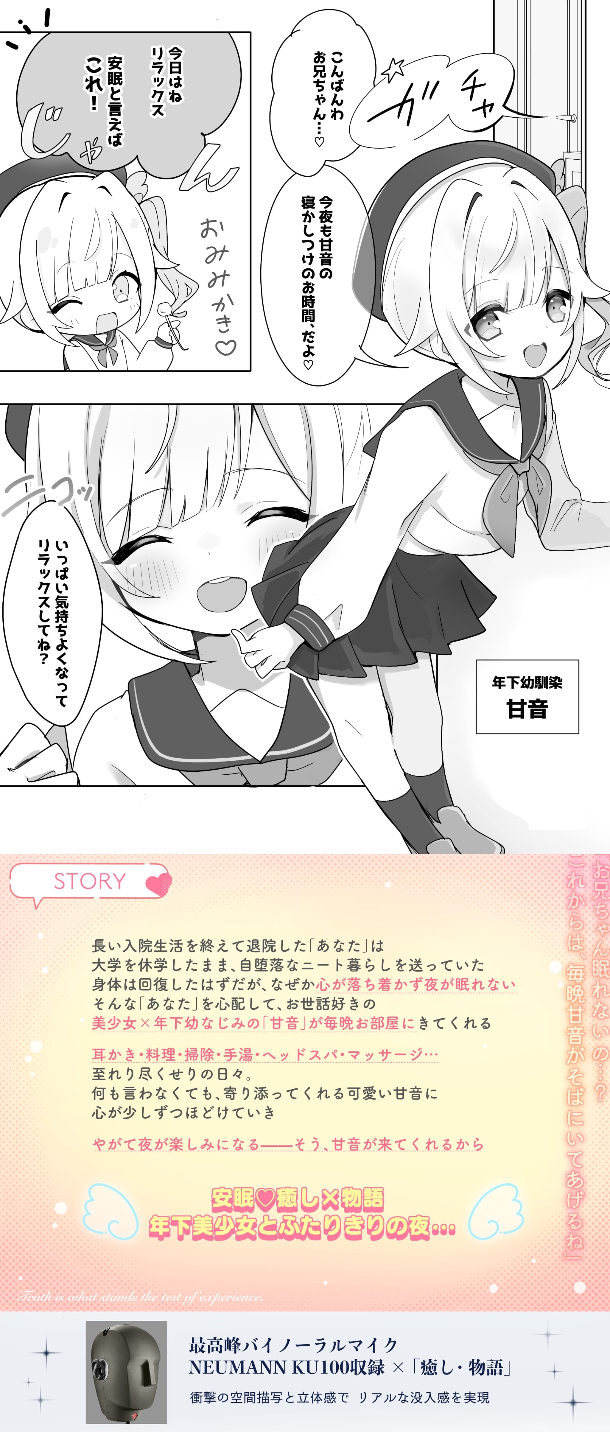 ヘッドホンプレゼント◢✅*☽ STORY *☽ 安眠♡癒し特化自堕落な生活&不眠症の「あなた」を癒すため幼なじみの甘音ちゃんが毎晩お部屋に…♡