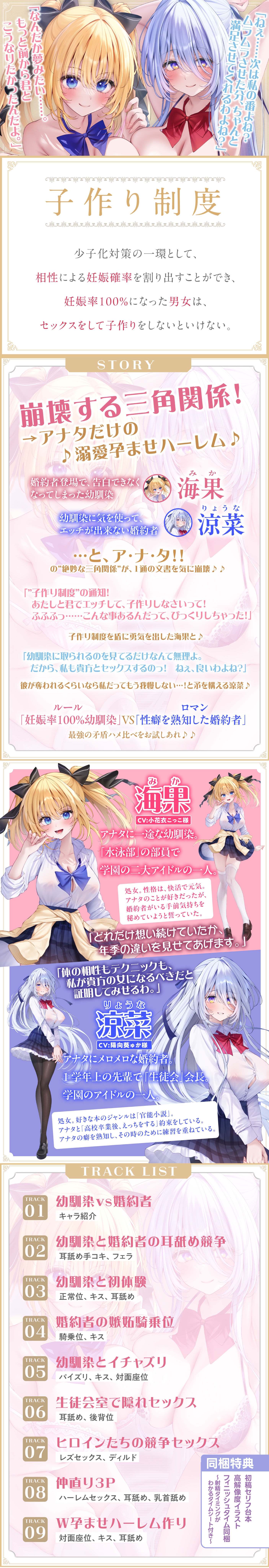 https://ci-en.dlsite.com/creator/7883/article/1671884●ハメ比べ!「”ルール ”妊娠率100%幼馴染」VS「”ロマン”性癖を熟知した婚約者」 CV:小花衣こっこ様・陽向葵ゅか様