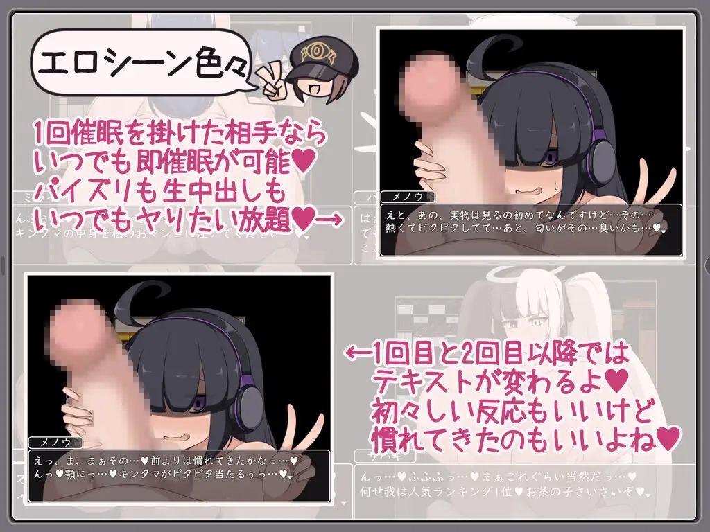 秘密を暴き、女の子に催○をかけていいなりにしていく…といったような流れとなっております。■エロシーン