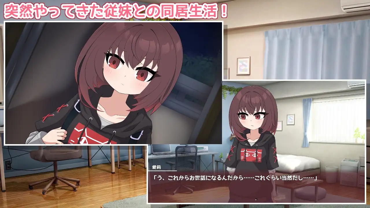 愛莉ちゃんは素直になりたい! / 豆狸堂 シミュレーション X Bluesky Misskey Facebook はてブ LINE 2026.02.04 シミュレーション 豆狸堂 愛莉ちゃんは素直になりたい! 突然押し掛けてきた生意気な従妹とのちょっとHな同棲生活! ・ストーリー いつもと変わらぬ日常を過ごしていたあなた。 しかし連絡もなく突然やってきた従妹の「愛莉」から泊めてほしいと告げられて…… 昔はよく懐いていたのにいつからか生意気な態度になっていた従妹と過ごす毎日。 生意気だと言っても可愛い従妹との同棲生活にわくわく半分ムラムラ半分になってしまい…… 基本CG 17枚(立ち絵分無し) ※RPGツクールMZで作成しています。 動作確認の為、体験版のプレイを推奨します。 昼はバイトやジムでお金を稼いだり体力を上げたりして、夜は愛莉ちゃんと会話をしたりプレゼントをあげて仲良くなろう! 夜はおさわりエッチ!仲良くなればお尻の方まで許してくれます! おさわりエッチは全て手描きアニメーション。 フェラ、正常位、騎乗位、アナルのアニメーションエッチが楽しめます。 帰宅時に愛莉ちゃんがお昼寝をしていたらエッチなイタズラも… 他にも一緒にお風呂やトイレに入ったりなイベントもあります!