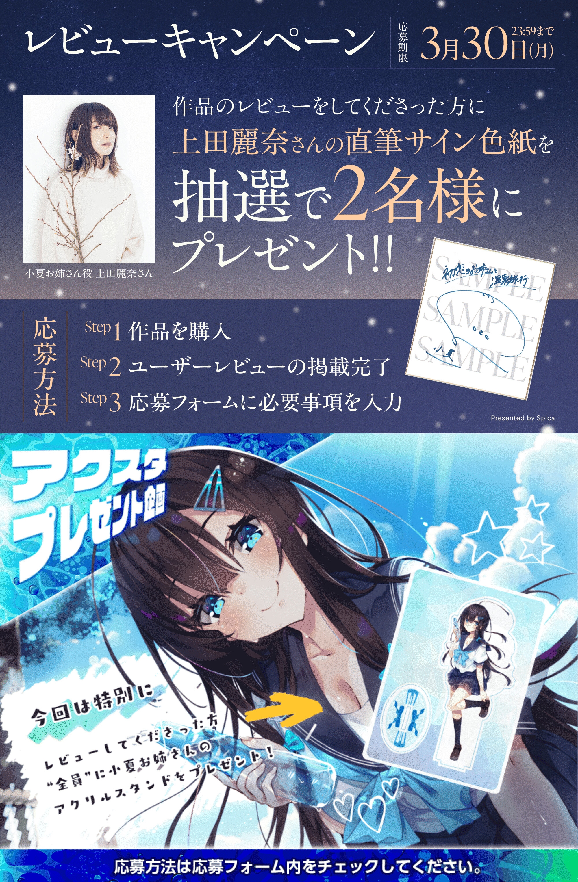 作品のレビューをしてくださった方に上田麗奈さんの直筆サイン色紙を抽選で2名様にプレゼント!