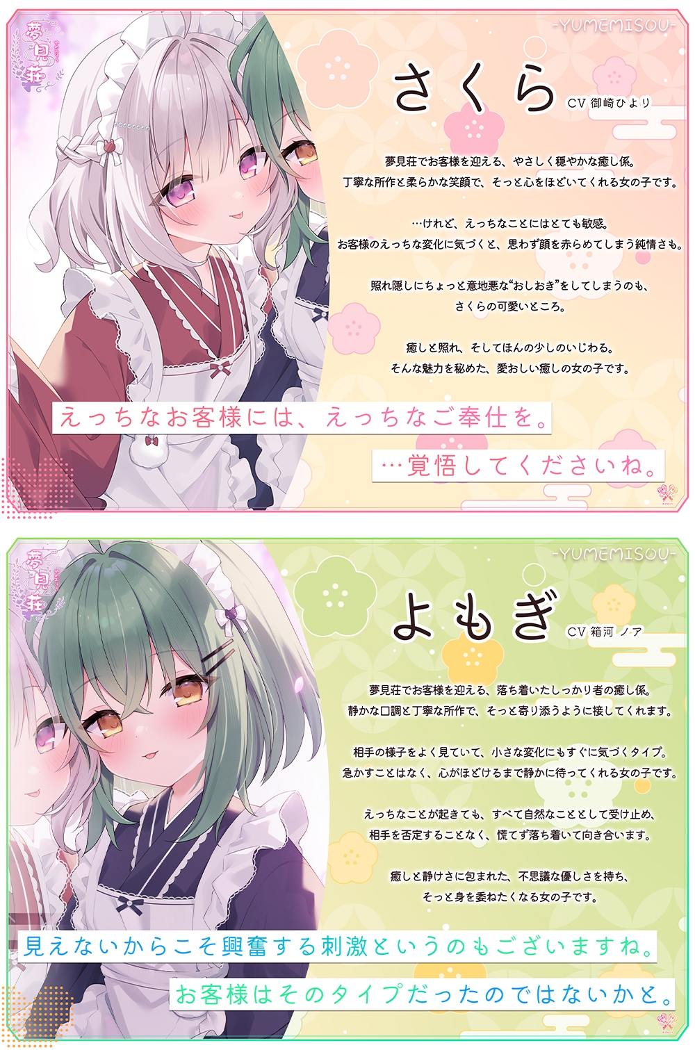 優しく穏やかな癒し係ふたりと過ごす、安らぎに満ちた癒しのシチュエーションです♡