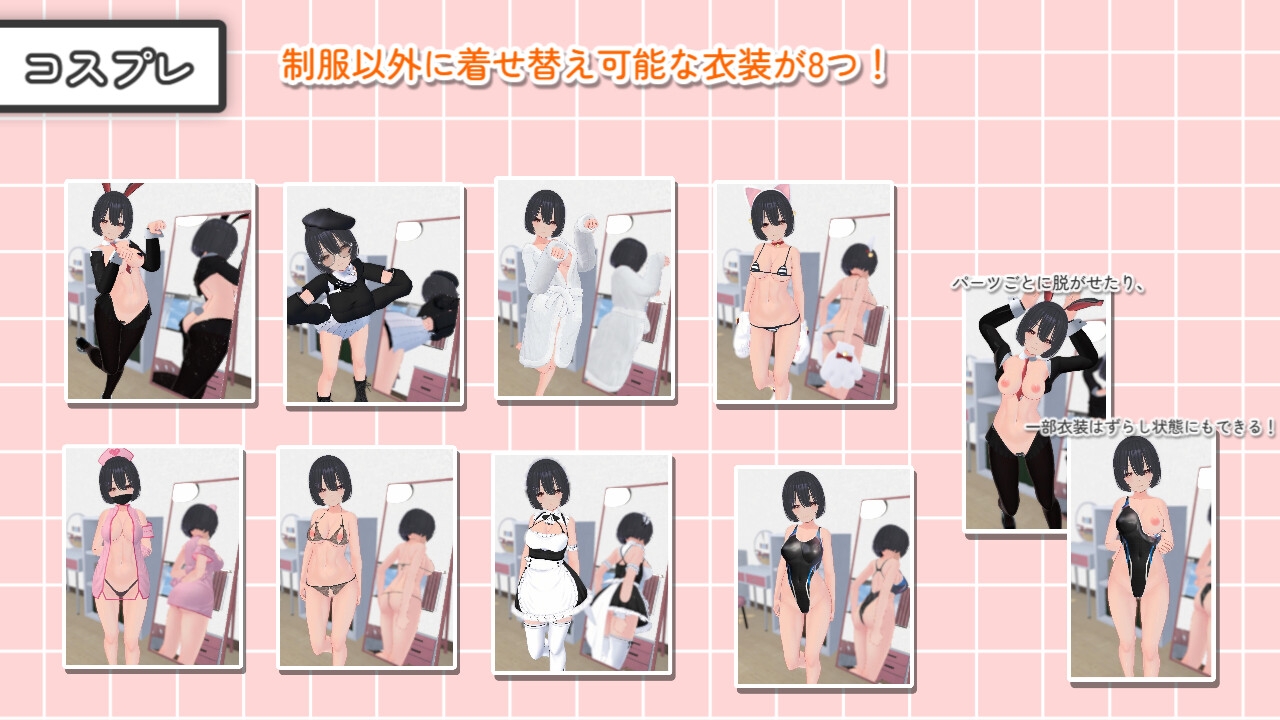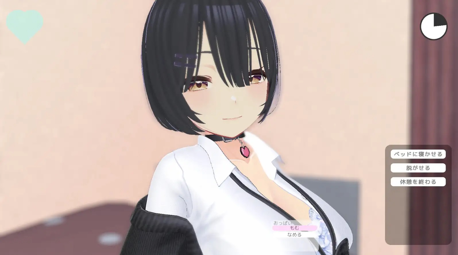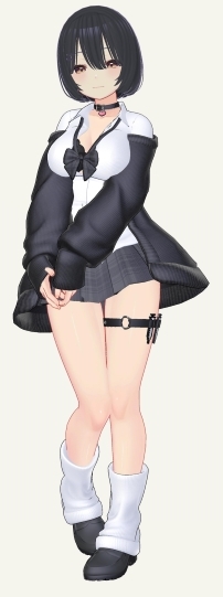 黒髪ショートで清楚な見た目なのに、胸元が大胆に開いた制服姿が目を引く小悪魔系JK。