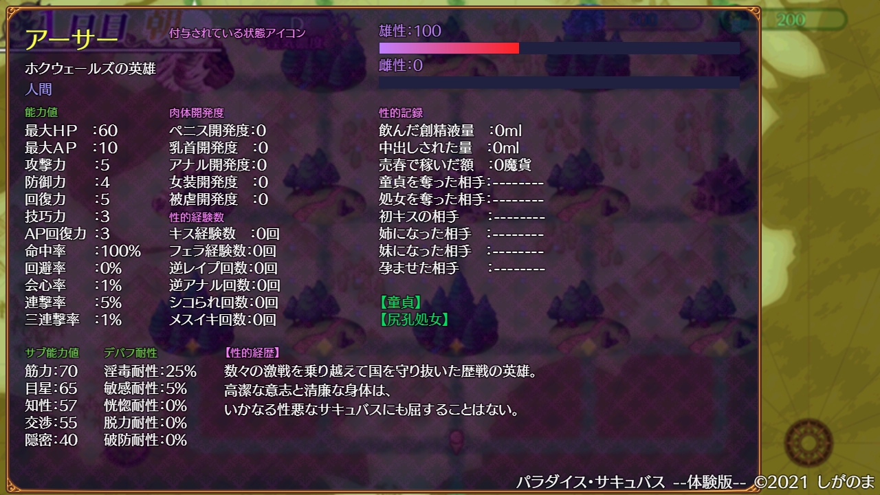 主人公にはペニス、乳首、アナル、女装などの開発度があります。