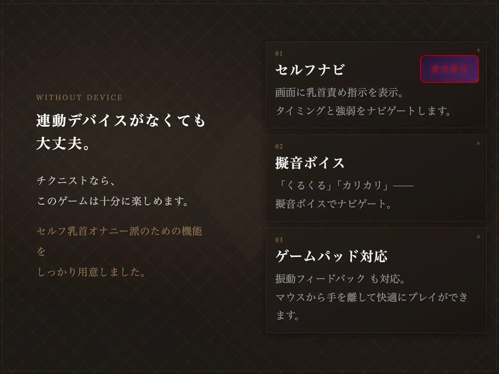 本作は【乳首オナニーサポート特化ゲーム】です。