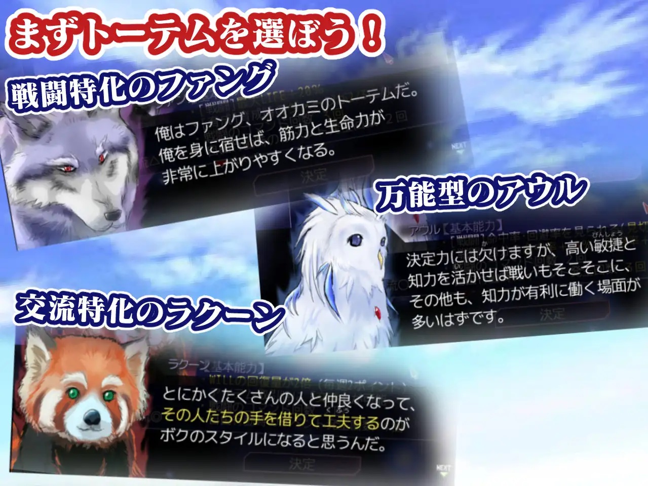 本作では「ゲーム開始時」に選ぶ『トーテム(守護霊)』によって主人公(男女選択可)の能力が大きく変わります!