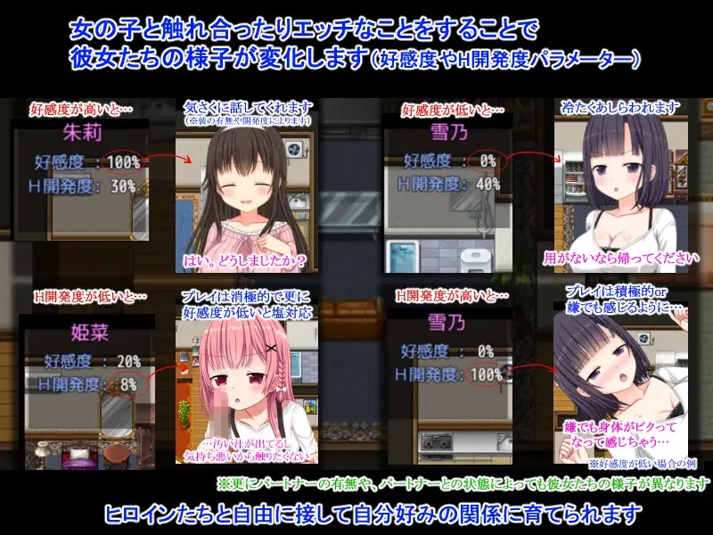 彼女たちの私生活に自由に介入でき、思うままに会話やエッチなことができます。