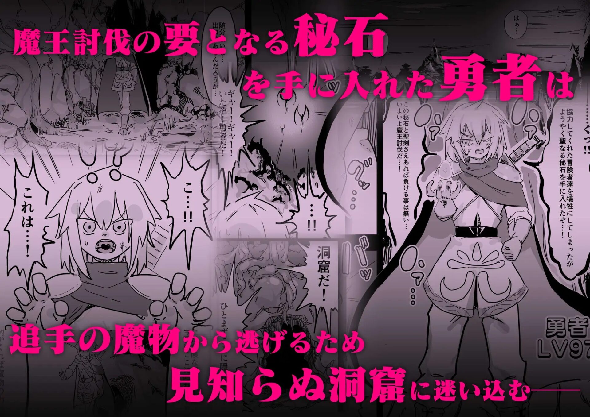 冒険者達の犠牲もあって魔王討伐の要となる秘石を入手した勇者は、追手から逃げる途中である洞窟に迷いこむ。